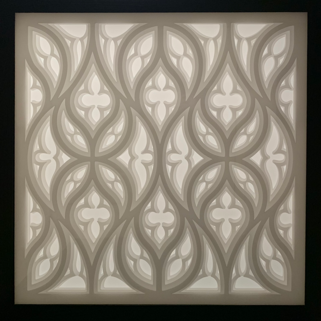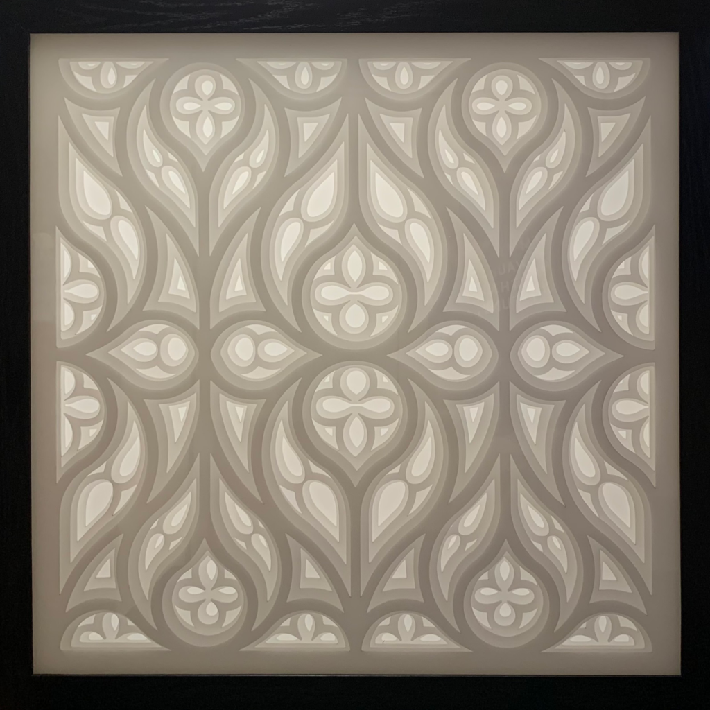 At 36″ x 36″, this glowing work isn’t just a decoration, it’s also a story. Five layers of acrylic panels team up to create a symphony of light that will turn any space into a haven. Wrapped in a frame of pine and oak, this light box is a blend of elegance and classical flair. Whether you’re looking for a conversation piece for your living room or a soothing glow for your bedroom, Arete will bring a touch of warmth and character to your space.